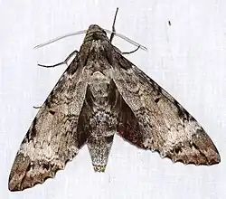 Pseudosphinx is a monotypic moth genus in the family Sphingidae first described by Hermann Burmeister in 1856. Its only species, Pseudosphinx tetrio, was first described by Carl Linnaeus in 1771. Its common names include tetrio sphinx, giant gray sphinx, frangipani hornworm,[2] and plumeria caterpillar.[3] In the island of Martinique it is best known as Rasta caterpillar (chenille rasta, in French) because of its colors which are reminiscent of the ones found in Rastafarian clothing and accessories. It is native to the tropical and subtropical Americas from the southern and southwestern United States to Brazil. The occasional individual has been recorded as far north as the northeastern United States.[2]