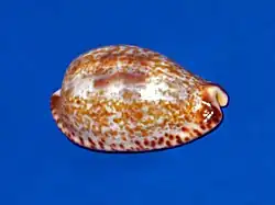 Pseudozonaria nigropunctata, common name the black-spotted cowry, is a species of sea snail, a cowry, a marine gastropod mollusk in the family Cypraeidae, the cowries.