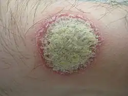- ^ Freedberg IM, Fitzpatrick TB (2003). Fitzpatrick's dermatology in general medicine (6th ed.). McGraw-Hill. p. 414. ISBN 978-0-07-138076-8.