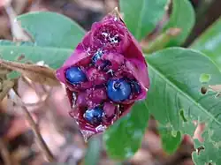 Extracts from the leaves, flowers, fruits and root of Psychotria colorata are traditionally used as an analgesic by Amazonian cabaclos native peoples. This analgesic effect has been studied in animals and shown to be reversible by naloxone, suggesting a mu opioid receptor mediated effect.[2][3] Subsequent research has identified several active alkaloids in the plant,[4][5] the most important of which are hodgkinsine, which acts as both a mu-opioid agonist and NMDA antagonist,[6] and psychotridine which is an NMDA antagonist with little or no mu-opioid affinity.[7]