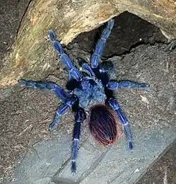 Lasiocyano is a genus of tarantulas (family Theraphosidae).[2] As of June 2023, it was a monotypic genus with the sole species Lasiocyano sazimai,[3] synonym Pterinopelma sazimai,[1] known as the Brazilian blue, iridescent blue or Sazima's tarantula. The species was first described by Rogério Bertani, Roberto Hiroaki Nagahama and Caroline Sayuri Fukushima in 2011.[1][4] In 2012, it became the first Brazilian species to appear on the International Institute for Species Exploration's top 10 new species list.[5]