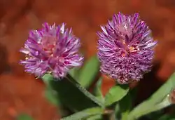 Ptilotus helipteroides, commonly known as hairy mulla mulla[2] or woolly tails,[3] is a species of flowering plant in the family Amaranthaceae and is endemic to arid parts of Australia. It is an erect to ascending annual herb, with sessile, linear, elliptic or lance-shaped leaves and oval, cylindrical or hemispherical pink or magenta spikes of flowers.