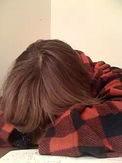 Hair fetishism manifests itself in a variety of behaviors. A fetishist may enjoy seeing or touching hair, pulling on or cutting the hair of another person.[3] Besides enjoyment they may become sexually aroused from such activities. It may also be described as an obsession, as in the case of hair washing or dread of losing hair. Arousal by head hair may arise from seeing or touching very long or short hair, wet hair, a certain color of hair or a particular hairstyle. Others may find the attraction of literally "having sex with somebody's hair" as a fantasy or fetish.[4] The fetish affects both men and women.