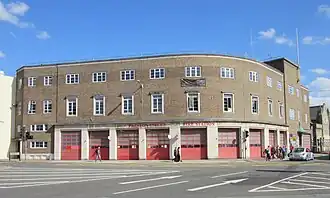 A fire service was established in Hove in 1831 at the instigation of the Brunswick Town Commissioners, based at Brunswick Street West. A fire brigade was officially formed on 20 June 1863.[39] The first purpose-built fire station was at 85 George Street,[40] now a café. The brigade also covered Aldrington after the parish was added to Hove Borough.[40] The George Street premises were extended c. 1908. The Borough of Hove officially took responsibility for the fire brigade on 1 November 1914 (it had the status of a volunteer brigade until then), and a new fire station was opened on Hove Street on 2 June 1926.[41] The "elegant structure ... with a charming bell-cot" was designed by Brighton architects Clayton & Black and cost £11,000.[42] East Sussex County Fire Authority took over the running of Hove fire brigade from 1 April 1948.[43] The station on Hove Street closed in 1976 and was replaced by the current facility at English Close off Old Shoreham Road,[43] which opened on 6 October of that year at a cost of £421,620.[42]
