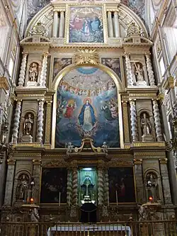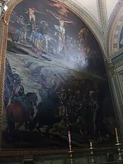 The last chapel next to the door of this nave has a Neoclassical style altarpiece, the side murals are covered with two paintings of the Passion, from the 17th century, The Descent and The Calvary, there is controversy about their authorship, on the one hand it is attributes it to the Spanish artist Rodrigo de la Piedra and on the other to Antonio de Santander.[8]