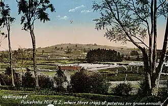 ![]() Pukekohe Hill seen in a 1912 postcard | |
