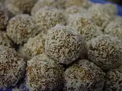 Puleleti is a traditional confection found in the low-lying Polynesian atoll islands of Tuvalu and Tokelau, made from desiccated coconut mixed with coconut syrup and rolled into balls.
