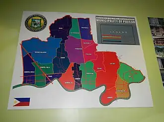 Pulilan is politically subdivided into 19 barangays, as shown in the matrix below. Each barangay consists of puroks and some have sitios.