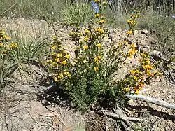 Pultenaea campbellii commonly known as New England bush-pea[2] or ragged bush-pea,[3] is a species of flowering plant in the family Fabaceae and is endemic to New South Wales. It is an erect shrub with linear leaves and yellow-orange flowers arranged near the ends of branchlets.