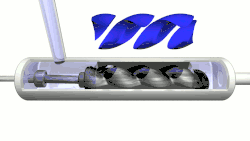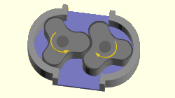 Named after the Roots brothers who invented it, this lobe pump displaces the fluid trapped between two long helical rotors, each fitted into the other when perpendicular at 90°, rotating inside a triangular shaped sealing line configuration, both at the point of suction and at the point of discharge. This design produces a continuous flow with equal volume and no vortex. It can work at low pulsation rates, and offers gentle performance that some applications require.