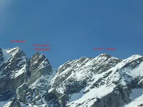On the summit is the permanent bivouac shelter named Giorgio e Renzo Novella, dedicated in 1983 to the Novella Brothers from Vercelli, who both died while mountain-climbing.[2]