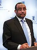 Voting for the new Puntland President and Vice President began on 8 January at 9.00 am local time.[34] Candidates that earned two-thirds of the MPs' votes would win their respective election. In the event that there is no victor in the first round, the top three contenders would face off in a second round, wherein they would need to secure 45 votes to be elected. If again no winner is established, a third and final run-off would be held between the top two candidates, who would then only require a simple majority to win.[33] The first round of voting saw 8 of the 11 presidential contenders eliminated from the running. Incumbent Puntland President Abdirahman Farole, former Prime Minister of Somalia Abdiweli Mohamed Ali and entrepreneur Ali Haji Warsame subsequently moved on to the second round, where Farole received 31 votes versus 18 for Ali and 16 for Warsame.[35] Farole and Ali then faced off in the third round, a final run-off in which Farole again initially led at 31 votes compared to 18 for Ali.[36] However, a late rally by Ali saw him eventually win the election, narrowly defeating Farole by 33 votes to 32. The victory officially makes Abdiweli Mohamed Ali the 5th President of Puntland.[37]