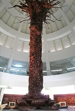 The complex of Purna Bhakti Pertiwi Museum consists of main building, supporting buildings, landscape, and house of painting. The cone-shaped main building with a floor space approximately 18,605 square metres,[2] consists of: Struggle Hall, Main Hall, Special Hall, Asthabrata Hall, and Library. It stores historical objects of Suharto's life, dating from the struggle of Indonesian independence to the era of Indonesian development.