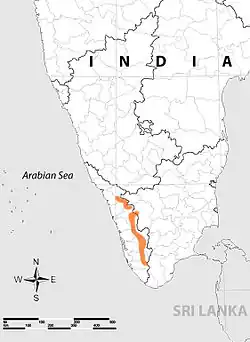 | Distribution range of Nasikabatrachus sahyadrensis (in ORANGE) | |