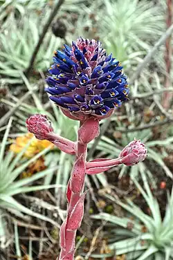 Puya is a genus of the botanical family Bromeliaceae. It is the sole genus of the subfamily Puyoideae, and is composed of 226 species.[1][2] These terrestrial plants are native to the Andes Mountains of South America and southern Central America. Many of the species are monocarpic, with the parent plant dying after one flower and seed production event.