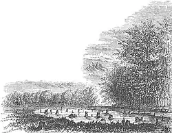 The most commonly accepted account of the battle, pieced together from reports from Lee and Captain Joseph Graham, indicates that Lee's deception was purely chance, and that he had originally intended to avoid the Loyalists, intending instead to encounter Tarleton's Dragoons, the more important objective. The sounds of battle apparently commenced when the militia at the rear of Lee's Legion, recognizing the strips of red cloth on the hats of Pyle's men as the badge of Loyalists, alerted Captain Eggleston, who was new to the South and was not familiar with local Patriot and Loyalist badges. When he asked one of the Loyalists which side he was on, the man replied "King George", and Eggleston responded by striking him on the head with his sabre. Seeing this, Pickens' riflemen joined in the attack.[3] The cavalry line turned and also attacked the Loyalists. Pyle's men broke and ran, but many were either killed or wounded in the early exchanges. Many Loyalists, believing the attack to be a mistake, continued insisting they were on King George's side, to no avail. After 10 minutes, the remaining Loyalists had fled, and 93 Loyalists were known to be dead, certainly more were wounded and others were seen being carried off by friends.[4] According to local legend, John Pyle was badly wounded in the battle and crawled into a nearby pond where he concealed himself until he could be rescued. After recovering from his wounds, he surrendered to the local militia. Later they were pardoned because of Dr. Pyle's care for wounded patriots.