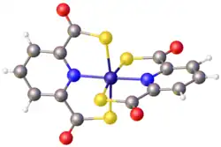 - ^ Hildebrand, U.; Lex, J.; Taraz, K.; Winkler, S.; Ockels, W.; Budzikiewicz, H. (1984). "Untersuchungen zum Redox-System Bis-(pyridin-2,6-dicarbothioato)-Ferrat(II) /-Ferrat(III) [1]". Zeitschrift für Naturforschung B. 39 (11): 1607–1613. doi:10.1515/znb-1984-1123. S2CID 94908888.