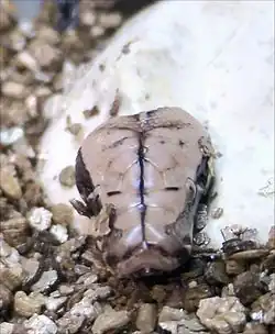 The color pattern is usually tan with brown blotching, which varies greatly. Though no instances of albinism have been reported, a few individuals display a significantly lighter color, appearing more yellow than brown. Juveniles have a more contrasting pattern than adults. The head is usually yellow.