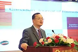 ![]() Qihao Weng speaking at the Earth Observation and Remote Sensing Applications conference in 2014 | |