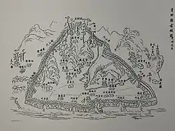 In the 35th year of Emperor Jiajing of Ming (1556), due to the constant attacks by Wokous coming from the coastal areas, the county magistrate Li Kai (李楷)ordered the construction of a 3 kilometers long stone wall surrounding the town, the section of wall along the Ou River still remains today,[6] and Qingtian is henceforth the only county in Lishui to have its own walled fortifications.[7]