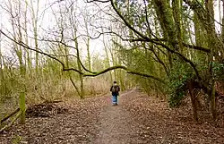 Quarry Moor nature reserve is a 7.5927 hectares (0.07593 km2; 0.02932 sq mi) biological Site of Special Scientific Interest (SSSI) and Geological Conservation Review site (GCR),[1] consisting of "species-rich calcareous grassland" over a scant soil covering, plus limestone rock, scrub, and woodland on raised areas and on the perimeter of the site.[17] It lies at the southern edge of Ripon, with an entrance on the west side of the A61 roundabout.[18] Facilities include information boards, accessible paths, informal paths, benches, and dog toilet bins,[2] besides a fenced-off wildflower meadow, and a children's play area in the north-east corner with a public car park.[8]