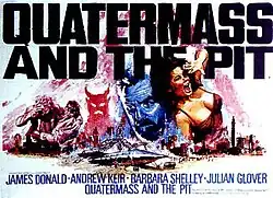 Quatermass and the Pit (US title: Five Million Years to Earth) is a 1967 British science fiction horror film from Hammer Film Productions.[2] It is a sequel to the earlier Hammer films The Quatermass Xperiment and Quatermass 2. Like its predecessors, it is based on a BBC Television serial, in this case Quatermass and the Pit, written by Nigel Kneale.[3] The storyline, largely faithful to the original television production, centres on the discovery of ancient human remains buried at the site of an extension to the London Underground called Hobbs End. More shocking discoveries lead to the involvement of the space scientist Bernard Quatermass.