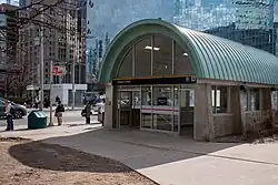 - Northwest entrance: The only uncovered stairwell entrance is located beside the Leslie L. Dan Pharmacy Building at the southeast corner of the University of Toronto lands.