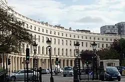 - Sussex Place: Originally 26 houses designed by Nash and built by William Smith in 1822–23, rebuilt in the 1960s behind the original façade to house the London Business School.[29]