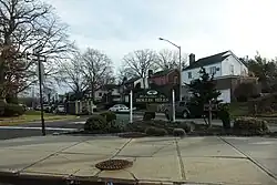 Queens Village was founded as Little Plains in the 1640s. Homage to this part of Queens Village history is found on the sign above the Long Island Railroad Station there. In 1824, Thomas Brush established a blacksmith shop in the area. He prospered and built several other shops and a factory, and the area soon became known as Brushville. On March 1, 1837, the railroad arrived. The first station in the area was called Flushing Avenue in 1837, Delancy Avenue by June 20, 1837, and Brushville by November 27, 1837,[7] likely about a mile west of the present station. In 1856, residents voted to change the name from Brushville to Queens.[8] The name "Inglewood" also was used for both the village and the train station in the 1860s and 1870s.[9][10] The name Brushville was still used in an 1860 New York Times article,[11] but both "Queens" and "Brushville" are used in an 1870 article.[12] Maps from 1873 show portions of Queens Village (then called Inglewood and Queens) in the town of Hempstead,[10] but 1891 maps show it entirely in the town of Jamaica.[13]