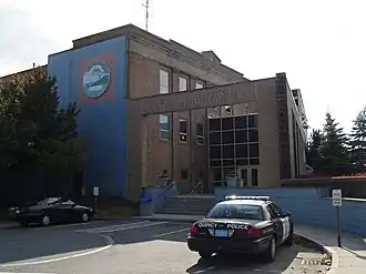 The Quincy Police Station is located at 1 Sea Street in Quincy, Massachusetts. The original three-story yellow brick Classical Revival structure was designed by the local firm of Clark, Batty and Gallagher, and built in 1925 for $75,000. It is the city's first purpose-built police station. It has only modest styling, including brick pilasters separating its window bays, and a simple cornice topped by a parapet which has a raised section containing the city seal.[2] The building has had a modern addition made to it.