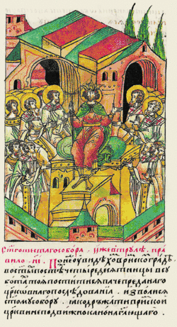The Quinisext Council (Latin: Concilium Quinisextum; Koine Greek: Πενθέκτη Σύνοδος, romanized: Penthékti Sýnodos, literally meaning, Fifth-Sixth Meeting), i.e., the Fifth-Sixth Council, often called the Council in Trullo, Trullan Council, or the Penthekte Synod, was a church council held in 692 at Constantinople under Justinian II.