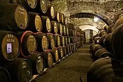 Port wine vines need to grow in schist rich soil and require a specific micro-climate. It is produced through a unique vinification method. The red varietals are the most common. The wine is produced in the beautiful landscape of the Douro Valley in Alto Douro region, a region that is classified as World Heritage by UNESCO.[4] The wine is exported from the city of Porto, thus acquiring the name Porto (or "Port" in English-speaking countries). There are several varieties of Port wine: some of the most popular are the Tawny, White, Ruby, and Late Bottled Vintage (L.B.V.). Wine cellars where port wine is stored to mature can be visited all year around in order to get information about the history of Port Wine and the Douro region.[5][6]