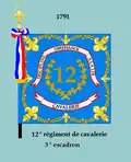 On 3 February 1794, the last of the royalist lineage was diminished following that day's further decree [a supplement to the original 1 April 1791, in which the simply became the 12th Regiment of Cavalry.[17] At this point, the regiment was based in Strasbourg and one squadron (100 troops) detached in Haguenau.[22]