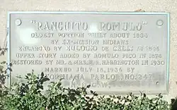 4. ^ a b c "Rómulo Pico Adobe (Ranchito Rómulo)". Stateof California Office of Historic Preservation. Archived from the original on October 27, 2008.