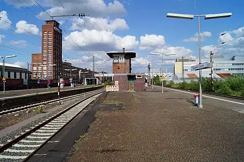 Rüsselsheim Opelwerk station is a railway station in the Opelwerk ("Opel factory") district in the municipality of Rüsselsheim am Main, located in the Groß-Gerau district in Hesse, Germany.