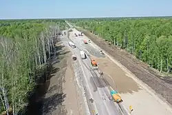 Reconstruction of R-254 "Irtysh" on the section km 1392–1422 in May 2020. -