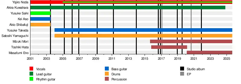 - Yojiro Noda (野田洋次郎) – lead vocals (2001–present), rhythm guitar (2005–present)