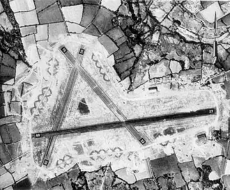 ![]() Upottery airfield, 22 April 1944, just before the arrival of the 439th Troop Carrier Group. | |