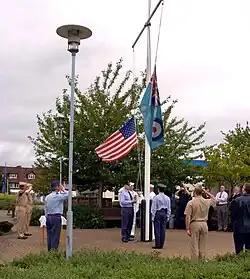 Following a review of facilities, the US Navy elected to vacate the West Ruislip site, beginning on 30 June 2006. The final chapel service had been held on 5 June.[24] Many operations returned to the United States, as part of a plan to save $1 million each year. Staff redundancies involved 7 US service personnel, 55 civilian staff from the US Department of Defence and 95 British civilian staff.[31] The base closed during a ceremony on 28 September, in which the American flag and Royal Air Force Ensign were lowered.[32]