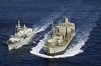 ![]() HMAS Westralia replenishing the Canadian frigate HMCS Regina in 2001 | |