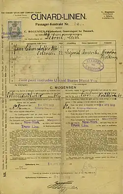 - ^ "Storm Buffeted Giant Cunarder". The Washington times. No. 5, 035. 28 March 1908. Retrieved 14 August 2025.