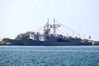 ROCS Chi Kuang (Chinese: 繼光; PFG2-1105) is a Cheng Kung-class guided missile frigate of the Republic of China Navy, used mainly in local air-defense and anti-submarine roles. It is the third of eight Taiwanese-built frigates based on the Oliver Hazard Perry class.