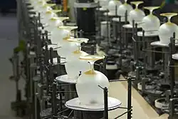 - An automatic manufacturing of the stemware with attached stem, stemware with pulled stem, large accessory pieces such as vases, bowls, carafes and other accessories