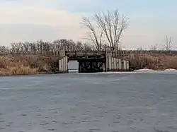 Mining ended in 1973 after more than 4.6 million tons of ore had been removed. The causeway was reopened and a bridge built to carry Crow Wing County Road 31. This bridge was a condition of the original lease arrangement. The eastern half of the lake was allowed to refill. The depth of the eastern half of the lake increased from 40 feet to 337 feet.[4]