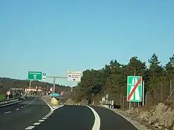 Raccordo autostradale 14 (RA 14; "Motorway connection 14"), also referred to as Diramazione per Fernetti ("Fernetti motorway connection"),[2][3][4] is an autostrada (Italian for "motorway") 1.5 kilometres (0.93 mi) long in Italy located in the region of Friuli-Venezia Giulia which connects the Raccordo autostradale RA13 near Opicina with the Italy–Slovenia border of Fernetti. At the border, the junction engages seamlessly with the Slovenian A3 motorway, which passes close to Sesana and engages, at Divaccia, with the Slovenian A1 Motorway, which ends in Ljubljana. It is a part of the E70 European route.