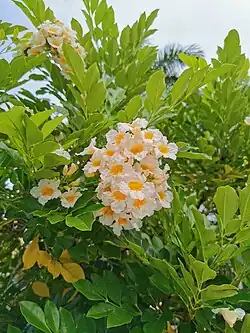 Radermachera is a genus of about 17 species of flowering plants in the family Bignoniaceae, native to southeastern Asia. They are evergreen trees reaching 5โ40 m tall, with bipinnate or tripinnate leaves, and panicles of large bell-shaped, white, pink, pale purple or yellow flowers 5โ7 cm diameter.