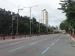 Quezon Avenue starts from the Mabuhay Rotunda and ends on Elliptical Road. It is one of the most important thoroughfares of Quezon City. It runs through the city center, lined with palm trees, government buildings, and nightclubs. It uses an interchange system at most of its intersections. This road used to be one of the most comfortable roads in the area, but it has been extremely prone to heavy traffic since the construction of the G. Araneta Avenue Underpass.[3]