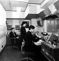 It was mainly the Japanese government that carried out the research on radio technology and took the necessary steps for its dissemination in the country.[4] In the wake of KDKA's success in the US, from 1920 the Ministry of Communications began to process licence applications for the first radio stations in Japan, many of which came from communications equipment shops, publishing houses, news agencies or newspapers. The government pressed for the various companies to merge into non-profit institutions and, after this consolidation process, three stations in Tokyo, Osaka and Nagoya were given the go-ahead to start broadcasting in 1925.[4] The first broadcasting tests were carried out from a temporary studio at the Tokyo radio station in Shibaura on the morning of 22 March, when an announcer scanned the call sign ‘JOAK’ letter by letter before giving the floor to the then director Gotō Shinpei. Regular broadcasts began the following July from the Atagoyama studio, finally bringing Japan into the age of information technology and telecommunications.[5]