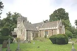 The Church of England parish church of Saint James the Great was built in about 1290.[2] The church is built of stone, but unusually its roof is supported by wooden pillars installed by a medieval Abbot of Abingdon, who was told in a vision to "seek [them] in the forest". The present south aisle dates from the 14th century but the chancel, nave and bell tower were rebuilt in the 15th century.[2] The windows contain Royal heraldic stained glass from the latter part of the 15th century and from the Tudor period. In the tower is a stained-glass portrait believed to represent King Henry VII.[3]