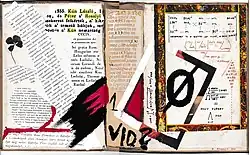 Rochallyi's visual work includes collage and painting. All his paintings and collages contain equations or mathematical elements. Primarily operators, equations and vectors.[72] His collages have been published mainly in magazines.[73] In 2020, he was included in a selection of artists in the catalog 101 Contemporary Artists and more.[74] In 2023, he was finalist in the Nanjing International Biennal, organised by Nanjing University of the Arts.[75] In 2024, he was selected for an art residency in Slovakia,[76] where he attempted to translate poetic equations into paintings, trying to figure out how to adapt the horizontal rigor of the equations to different forms.[77]